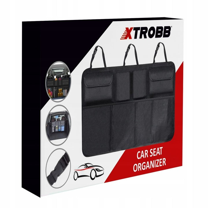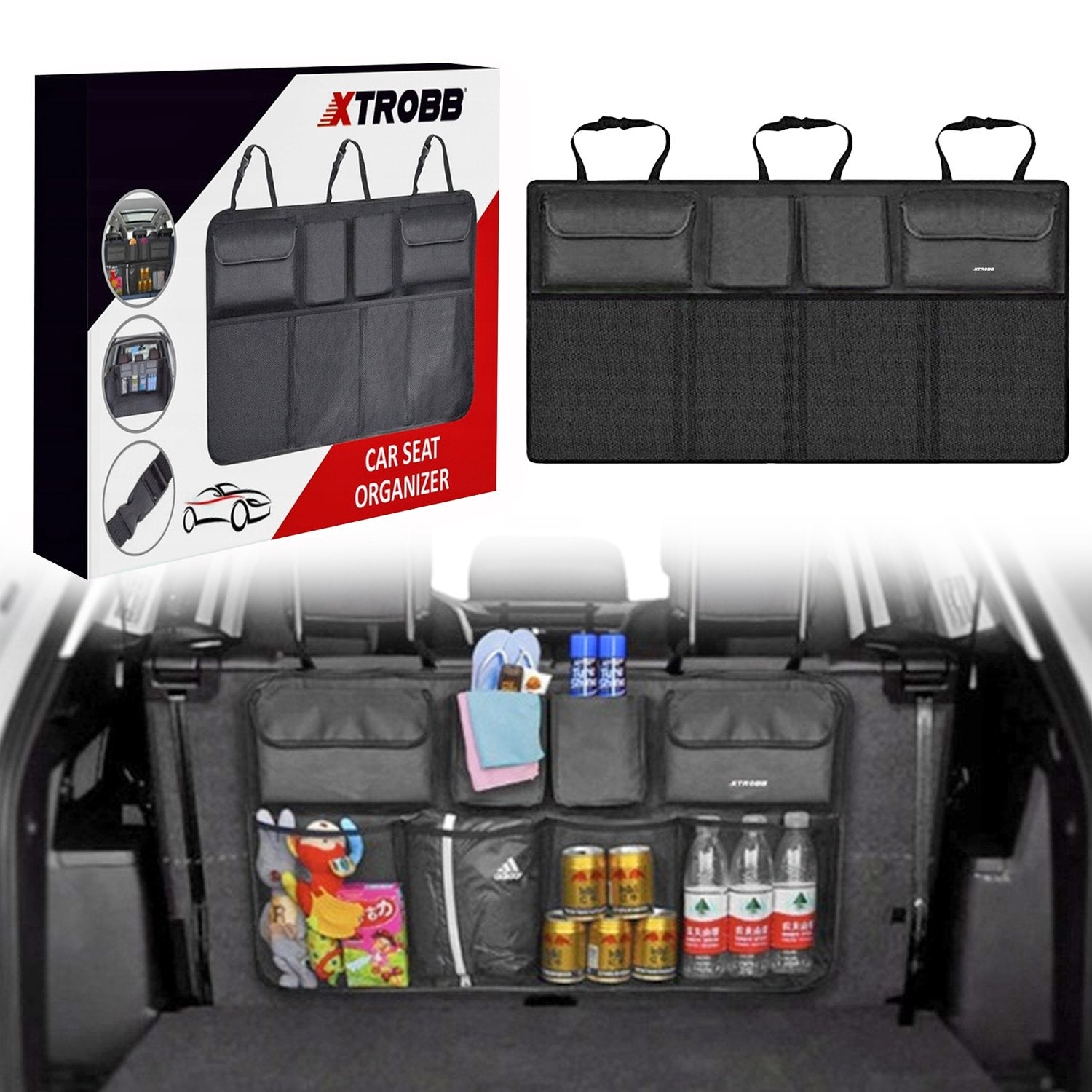 Har du någonsin öppnat din bagagelucka och tänkt "Var ska jag sätta allt detta?" Oroa dig inte mer. Med den här praktiska förvaringen för bilbaksätet blir ditt billiv enklare än någonsin. Med sina 8 olika fickor blir den perfekt för saker såsom startkablar, leksaker, snacks, vattenflaska, paraply eller första hjälpen-kit. Tillverkad av robust vattentätt Oxford 600-material håller den dina saker såväl torra som på plats.
