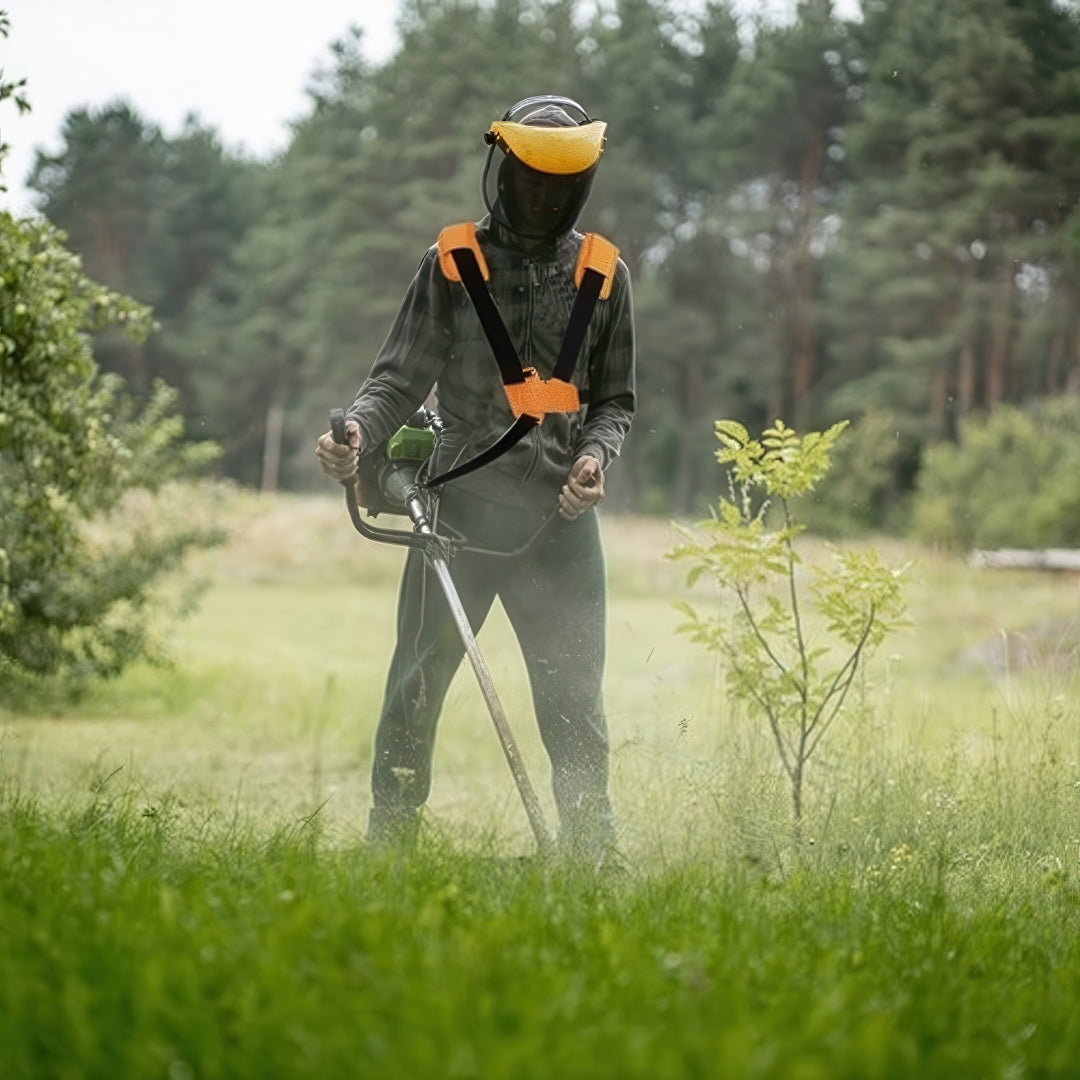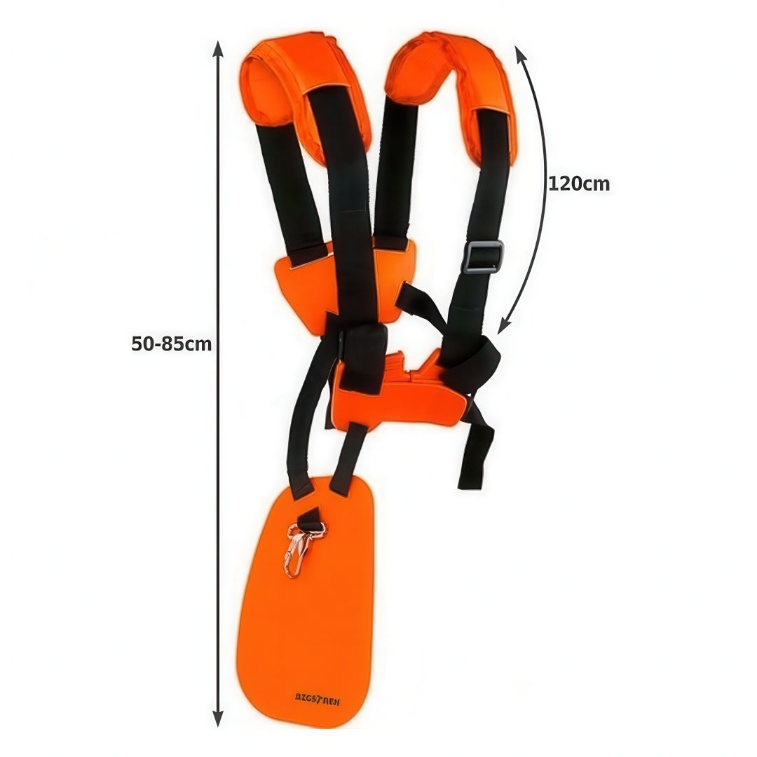 De mjuka axelskydden på remmarna kan justeras för att ge maximal komfort, vilket gör att största delen av vikten bärs av skydden och belastningen på överkroppen minskas. Denna sele gör arbetet med grästrimmer mycket mindre ansträngande och mer effektivt. Perfekt för både amatörer och professionella trädgårdsmästare som vill ha en smidig och bekväm trädgårdsupplevelse!