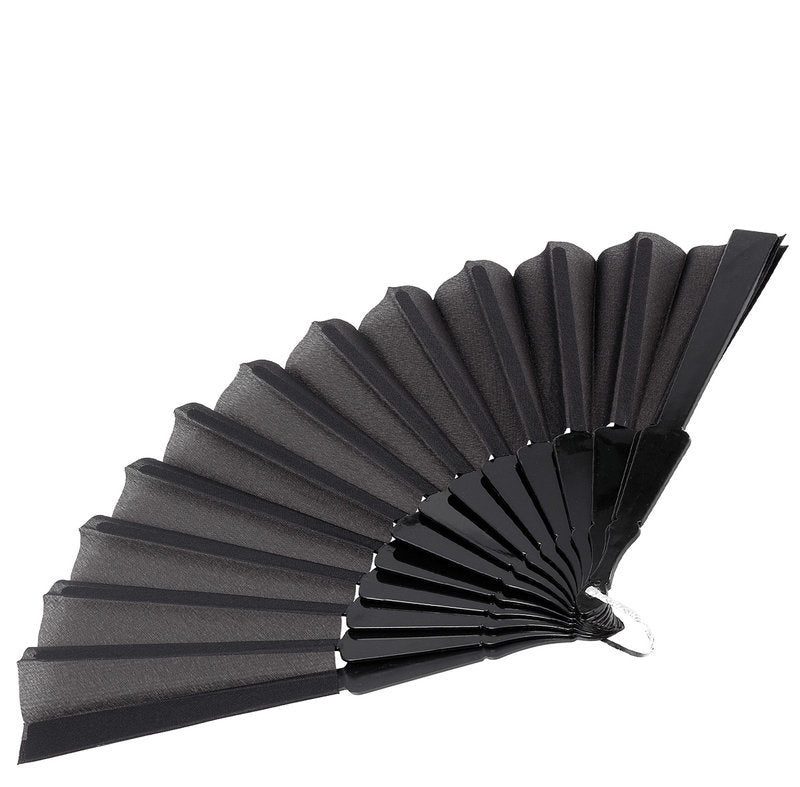 Denna solfjäder i svart plast är en elegant och praktisk accessoar som passar alla tillfällen. Med sitt tunna, stilrena tyg och sin funktionella design är den perfekt för både varma sommardagar och festliga tillställningar. Med sin genomtänkta design är den enkel att använda och idealisk för att hantera sommarens hetta.