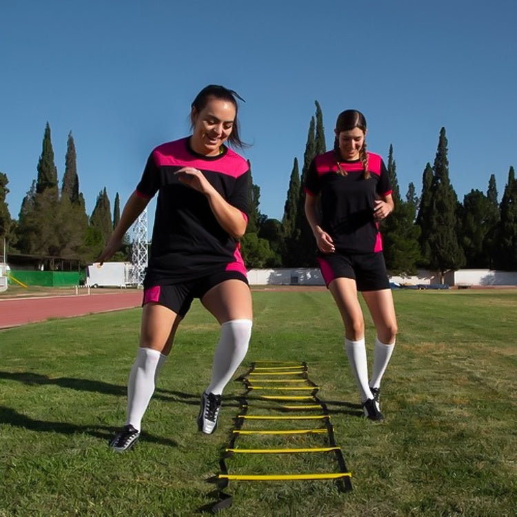 Denna träningsstege är inte bara praktisk utan också konstruerad för att stå emot krävande användning tack vare det hållbara polyester materialet. Stegen rullas enkelt ihop till en kompakt form, vilket gör att den inte tar mycket plats när den inte används. Använd stegen inomhus i gymnastiksalen eller utomhus på träningsplanen. Den är perfekt för alla typer av övningar som kräver snabbt fotarbete, från fotbollsträning till agilityövningar för hundar, vilket gör den till en mångsidig utrustning för alla träningsnivåer.