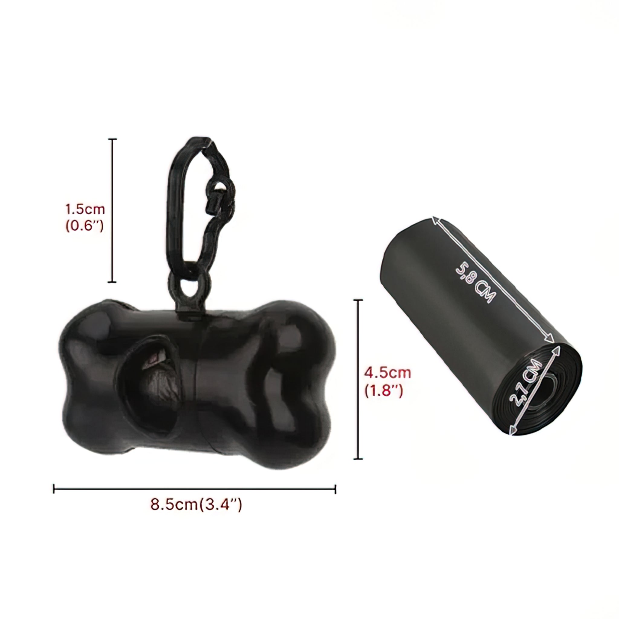 Påsarna är dessutom tillräckligt stora, kraftiga och starka för att inte läcka, gå sönder eller släppa igenom någon obehaglig lukt, vilket gör dom till ett utmärkt val av hundbajspåsar. En praktisk liten behållare i form av ett hundben medföljer så att du kan förvara en rulle med påsar i den och samtidigt fästa behållaren i kopplet, bältet eller ryggsäcken när du ska ut på promenad.