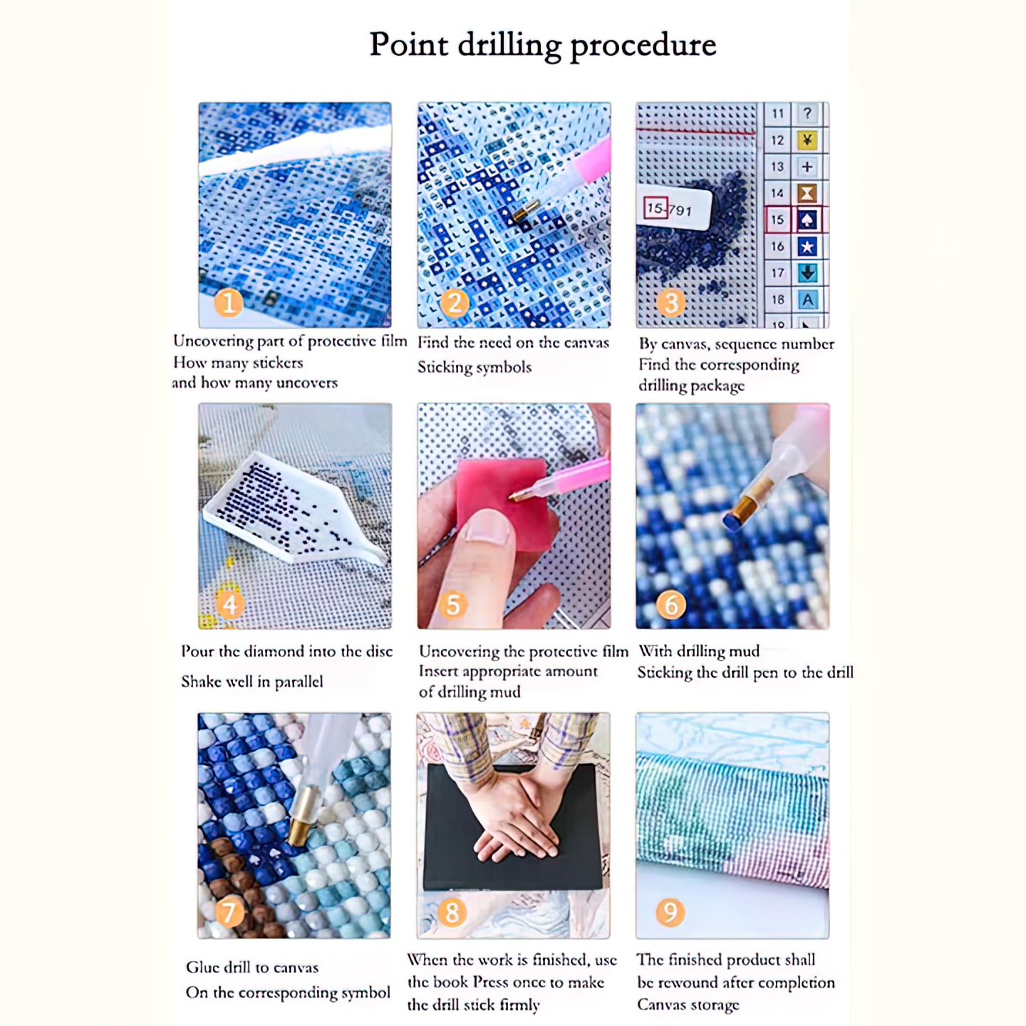 För att börja, häll försiktigt ut de små diamanterna i den medföljande brickan med upphöjningar. Detta gör det enkelt att plocka upp dem med pennan och placera dem exakt där de behövs på duken. Diagrammet är klisterbelagt, vilket säkerställer att diamanterna sitter stadigt på plats. Ett användbart tips är att ta bort skyddsplasten från diagrammet gradvis för att få de bästa resultaten. När du väljer detta Diamond Painting kit får du inte bara en fantastisk hobby, utan även en chans att skapa konstverk som du kommer vara stolt över. Det är en rolig och avkopplande aktivitet som passar för alla åldrar!