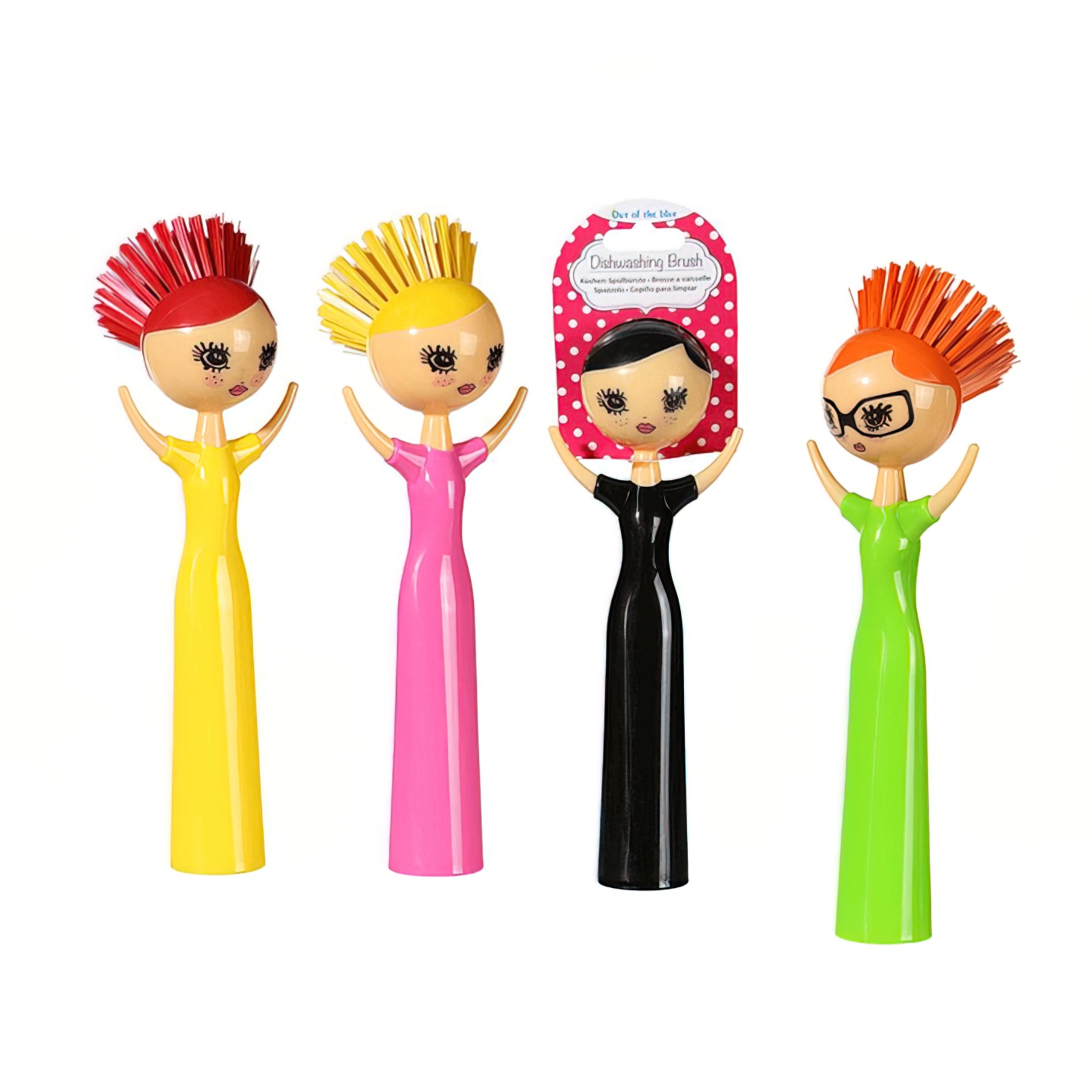 Denna unika borste ger köket en livlig och lekfull detalj, som gör diskbänken mer inbjudande. Med sin coola design och härligt stubbat hår blir diskningen nästan en festlig aktivitet. Diskborsten har en lång, färgglad "klänning" som lyfter humöret varje gång den används, och är en riktig showstopper på diskbänken!