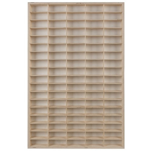 Denna förvaringshylla är den perfekta lösningen för att hålla ordning på barnens samlingar. Med plats för upp till 90 fack, erbjuder hyllan en unik möjlighet för barnen att organisera och enkelt återfinna sina leksaker, utan att behöva rota runt på golvet. Dessutom ger dess furuplywoodkonstruktion en tidlös, naturlig look som passar in i alla rum.