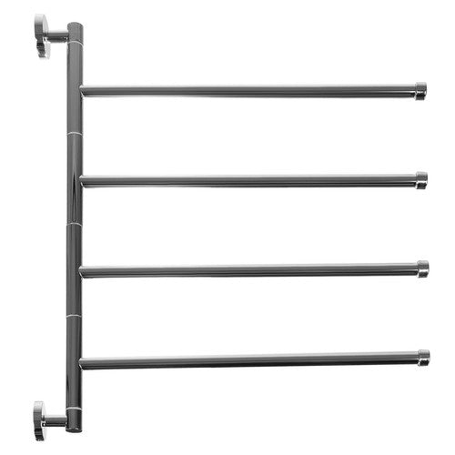 Denna svängbara handdukshängare är den perfekta kombinationen av stil och funktion. Med fyra individuellt roterbara armar, som kan vridas 360 grader och placeras 8 cm isär, får du gott om utrymme för att hänga handdukar, kläder eller andra föremål utan att de nuddar varandra. Tillverkad av högkvalitativ metall är hängaren både robust och hållbar, och varje arm kan bära upp till 2,5 kg.