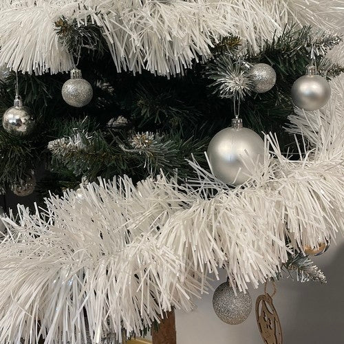 Skapa en magisk julstämning med denna imponerande julgirlang på hela 6 meter! Med sin täta och eleganta design är den inte bara en perfekt prydnad för julgranen, utan också idealisk för att dekorera fönster, trappstaket eller balkonger. Den flexibla tråden i mitten gör det enkelt att forma girlangen efter dina behov – vira den runt en balustrad, kombinera med julkransar eller använd som en unik detalj i blomsterarrangemang. Den vita, glänsande ytan ger en vacker kontrast till de gröna grenarna och förstärker rummets festliga känsla.