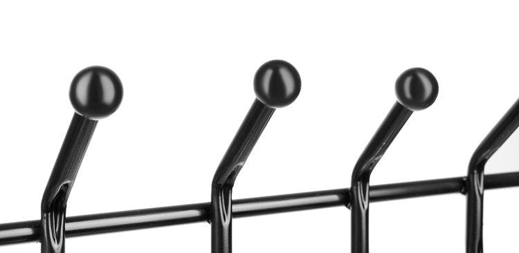Den här klädhängaren kombinerar stil och funktion, vilket gör den till ett perfekt val för att hålla ordning på kläder och skor. Med 18 krokar och tre hyllor finns det gott om plats för jackor, väskor och andra tillhörigheter, samtidigt som den kompakta designen gör den idealisk för både hall och sovrum. Den erbjuder smart förvaring och håller allt inom räckhåll, oavsett om det är ytterkläder eller badrockar.