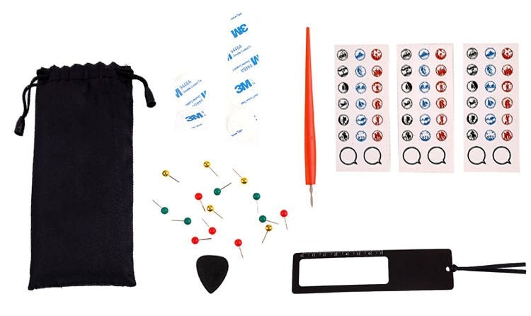 - Medföljer: Karta, tub, skrapkub, 15 nålar, linjal med förstoringsglas, 40 etiketter, skrapkort, rengöringsborste, monteringstejp, en dragsäck