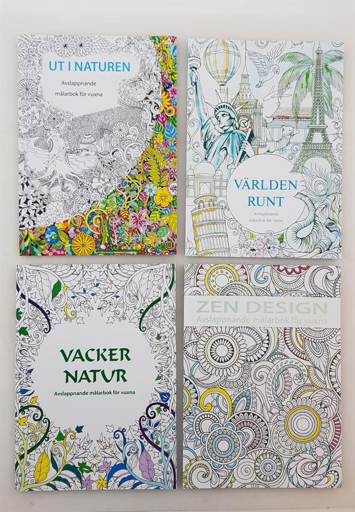De fyra olika målarböckerna är skapade för vuxna och finns som dessa varianter: Ut i naturen, Zen Design, Världen Runt och Vacker natur. Alla innehåller 24 sidor med vackra bilder och mönster. Böckerna är i A4-format och pappret är 100 gsm. Passar både tusch, färgpennor och flytande färg. De vackra bilderna kan hjälpa dig hitta tillbaka till lugnet inuti och ger dig absolut en mysig stund i kreativitetens tecken.
