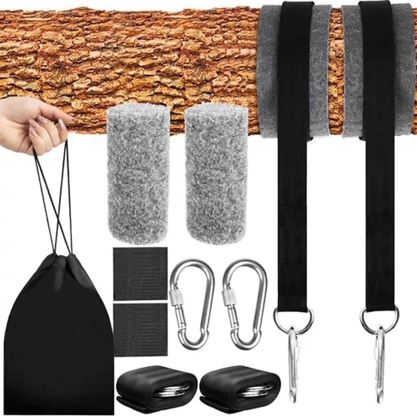 Installationen är smidig och kräver inga extra verktyg eller borrning, vilket skyddar träden från skador. Allt kommer snyggt packat i en praktisk förvaringsficka, så att du enkelt kan transportera och förvara komponenterna när de inte används. Gör varje utomhusäventyr bekvämt och problemfritt med detta mångsidiga kit!