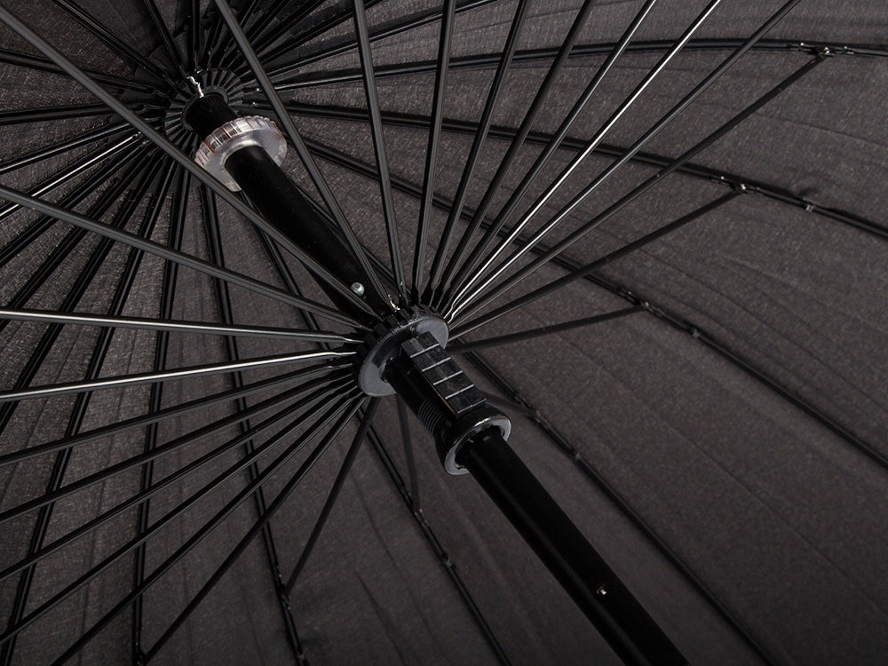 Ge dig ut i regnet med stil med detta XXL-paraply som kombinerar elegans och funktion. Med en imponerande diameter på 105 cm och 24 flexibla armar ger det ett stabilt skydd mot både regn och vindbyar. Aluminiumramen tillsammans med armar av polykarbonatfiber säkerställer lång hållbarhet och pålitlighet i alla väderförhållanden.