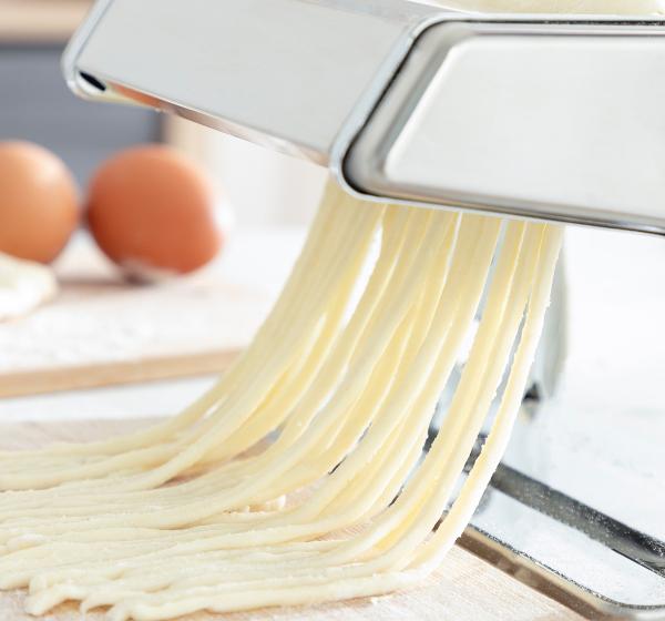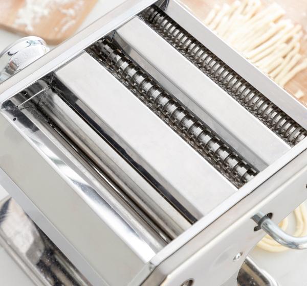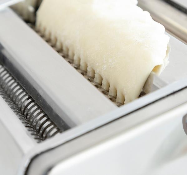 Nu börjar det roliga och det är nu denna underbart smidiga maskin kommer till sin rätt! Du spänner fast maskinen i bordet eller bänken med klämman och den hjälper dig att knåda, sträcka och skära degen! Du anpassar hastigheten lätt eftersom du vevar manuellt. Maskinen kan skära tre olika bredder på pasta; spagetti, tagliatelle och lasagneplattor. Men givetvis kan du använda den knådade och valsade degen till vad du vill! Du kan även ställa in tjockleken på degen i 8 olika steg. Med maskinen kommer en manual som innehåller recept och tips. En robust maskin som är lätt att rengöra, är snygg och enkel att använda.