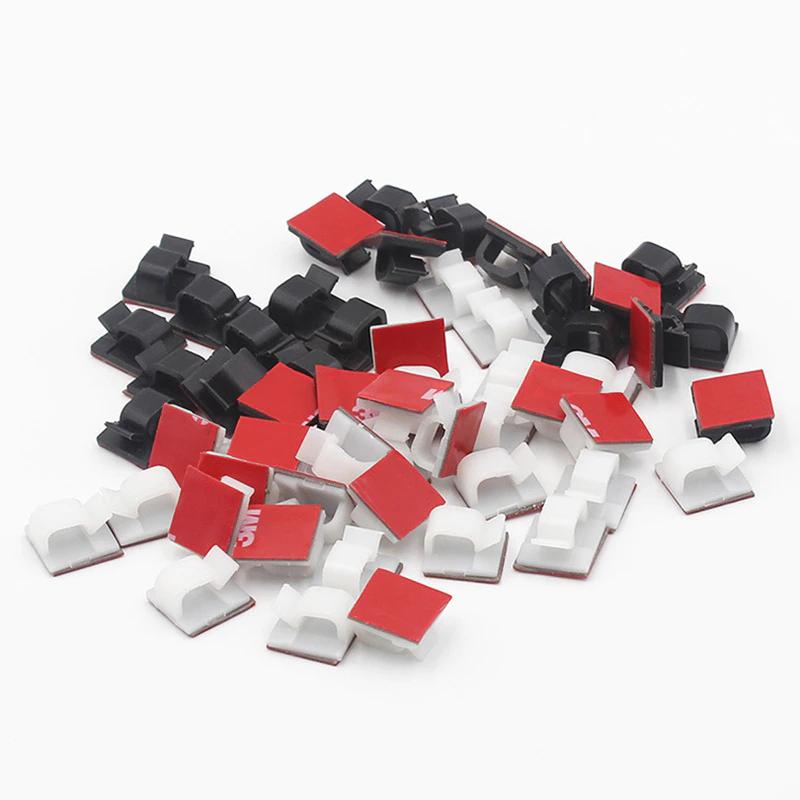 Kabelhållarna, gjorda av miljövänligt PA66-material, är designade för att fästa kablar längs med dörrlister, bordskanter eller hyllor. Det starka dubbelhäftande klistret gör att ingen extra utrustning behövs för att montera klämmorna på ytor som trä, glas och metall. Bara se till att ytan är ren och torr före montering för bästa resultat. Glöm irriterande kablar som hänger fritt!