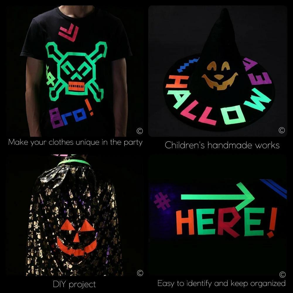 Denna tejp kommer i en fin neon rosa färg och tack vare UV-funktionen lyser de färgade tejpen i mörkret och skapar en tuff och vacker lysande dekorationen i mörkret.