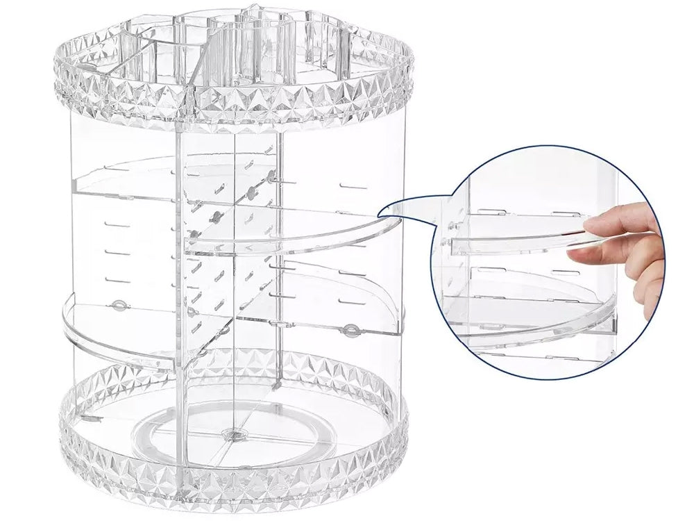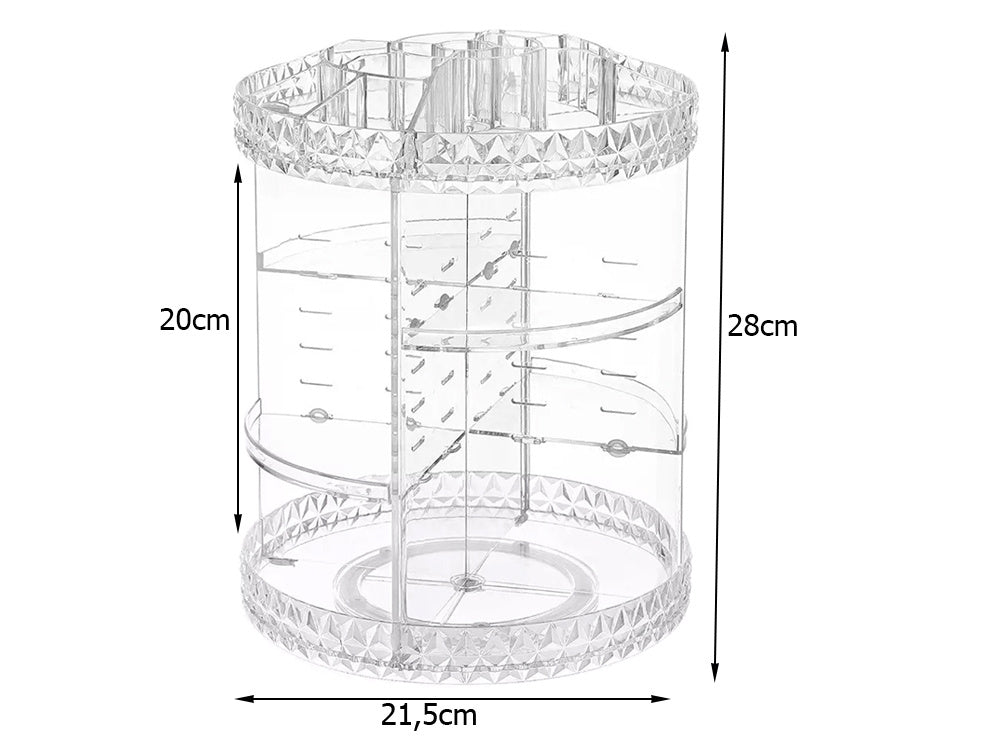 Skapa ordning och struktur i din sminkhörna med detta stilrena och funktionella sminkställ. Den praktiska 360° rotationen gör det enkelt att nå alla dina favoriter, från läppstift och borstar till hudvårdsprodukter och nagellack. Med sju justerbara nivåer kan du anpassa förvaringen efter dina behov, vilket ger en skräddarsydd lösning som sparar plats och håller allt organiserat.
