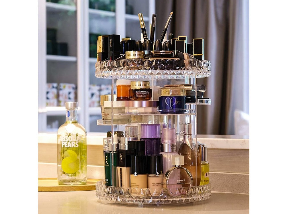Sminkstället är tillverkat i transparent akryl som ger ett elegant och modernt intryck, samtidigt som det passar in i alla miljöer. Den släta ytan gör det enkelt att rengöra, vilket håller dina produkter prydliga och fräscha. Oavsett om det står i badrummet eller sovrummet, är detta en både praktisk och dekorativ lösning. Perfekt för dig som vill ha ordning och reda – eller som en uppskattad present till någon med intresse för skönhet.