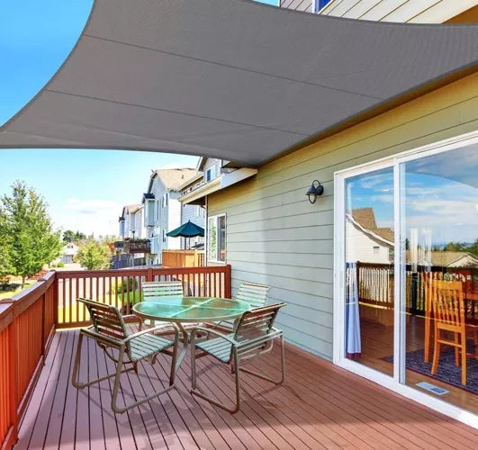 Detta solsegel erbjuder effektivt skydd mot UV-strålar tack vare sina högkvalitativa, täta fibrer som inte släpper igenom solljus. Detta minskar temperaturen under solseglet och möjliggör god luftcirkulation, vilket är perfekt under heta sommardagar. Dessutom är materialet vattentätt, så det är motståndskraftigt mot fukt och mögel och torkar snabbt vid regn.
