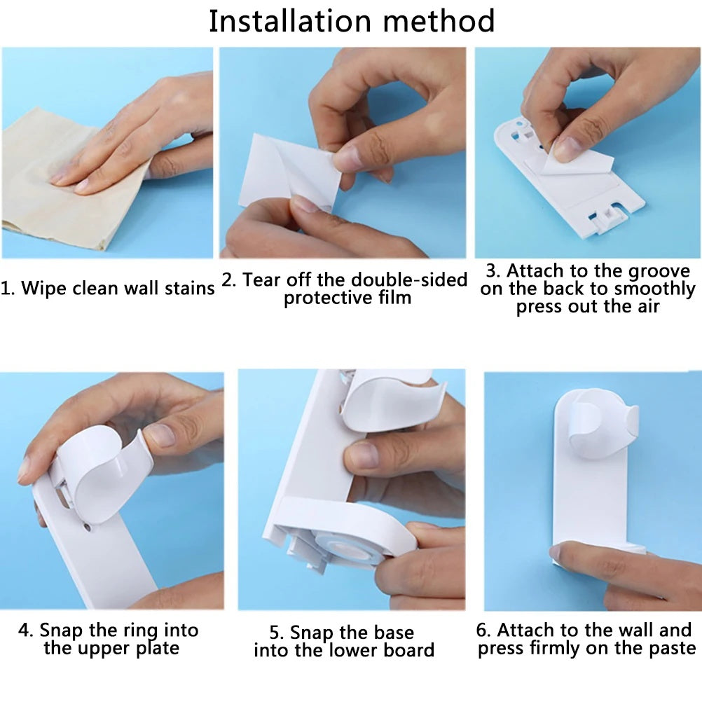 Tandborsthållaren levereras med självhäftande tejp, vilket gör det enkelt att montera på väggen och sparar värdefull plats vid handfatet. Den fungerar på olika ytor som kakel, glas, metall, trä, plast med mera. Men oavsett yta bör du först rengöra väggen från smuts och se till att den är torr, för att säkerställa en problemfri installation. Så testa denna tandborsthållare du med och gör din morgonrutin smidigare och ditt badrum mer organiserat!
