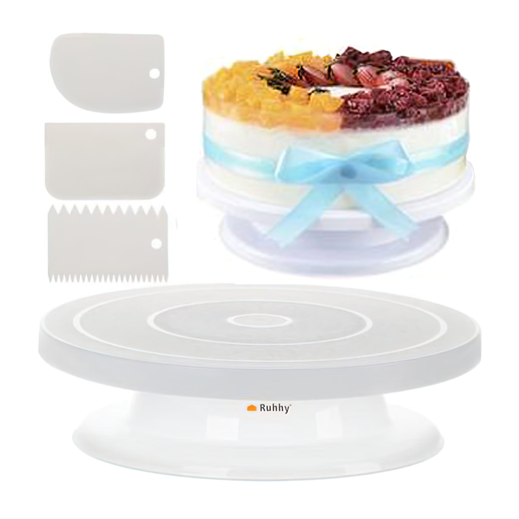 Det här roterande tårtfatet är idealisk för både dekoration och servering. Den stabila och avtagbara basen gör den lätt att rengöra och enkel att bära, vilket är perfekt för att visa upp och servera dina bakverk. Tack vare den roterande funktionen kan du enkelt komma åt hela tårtan när du ska spackla, täcka eller dekorera den.