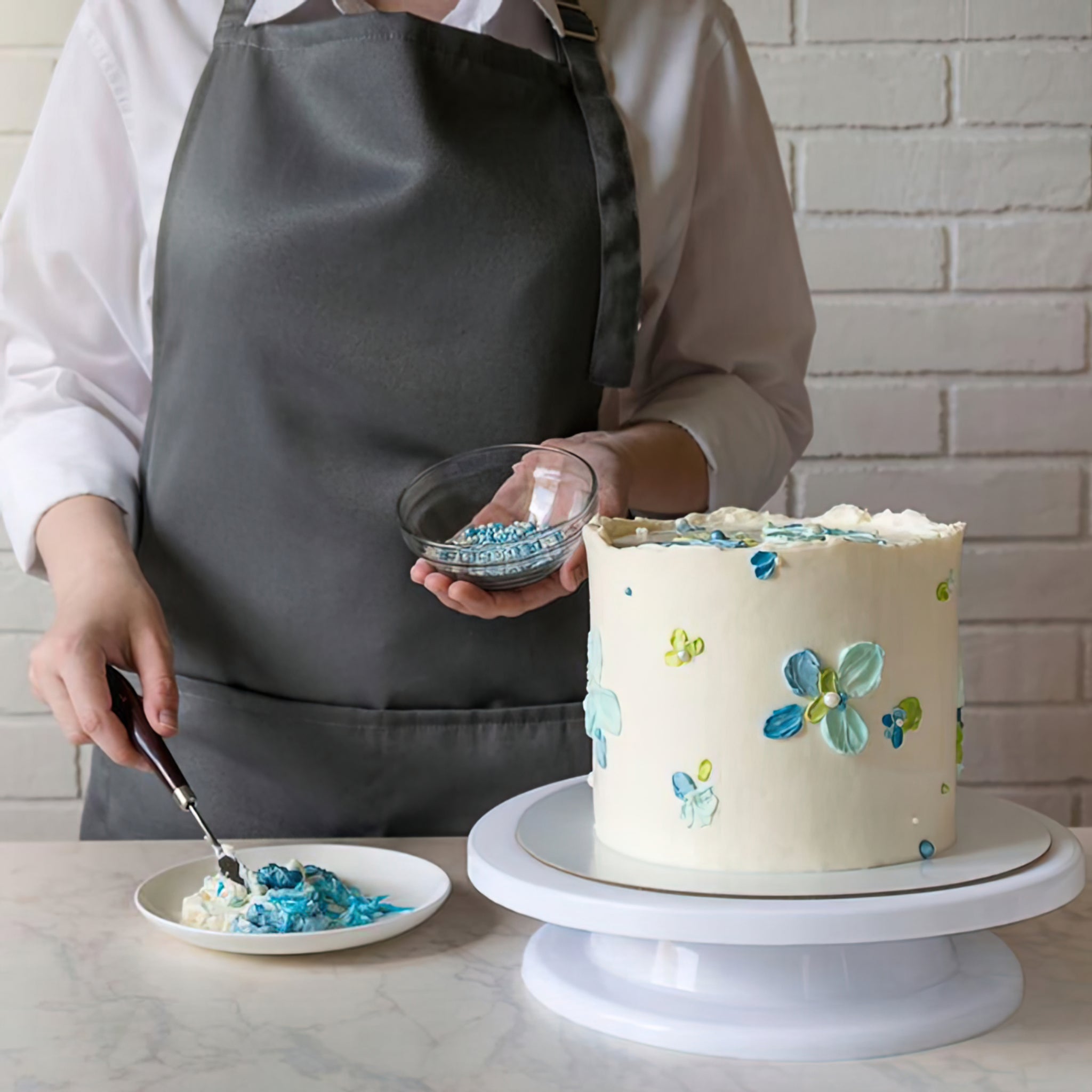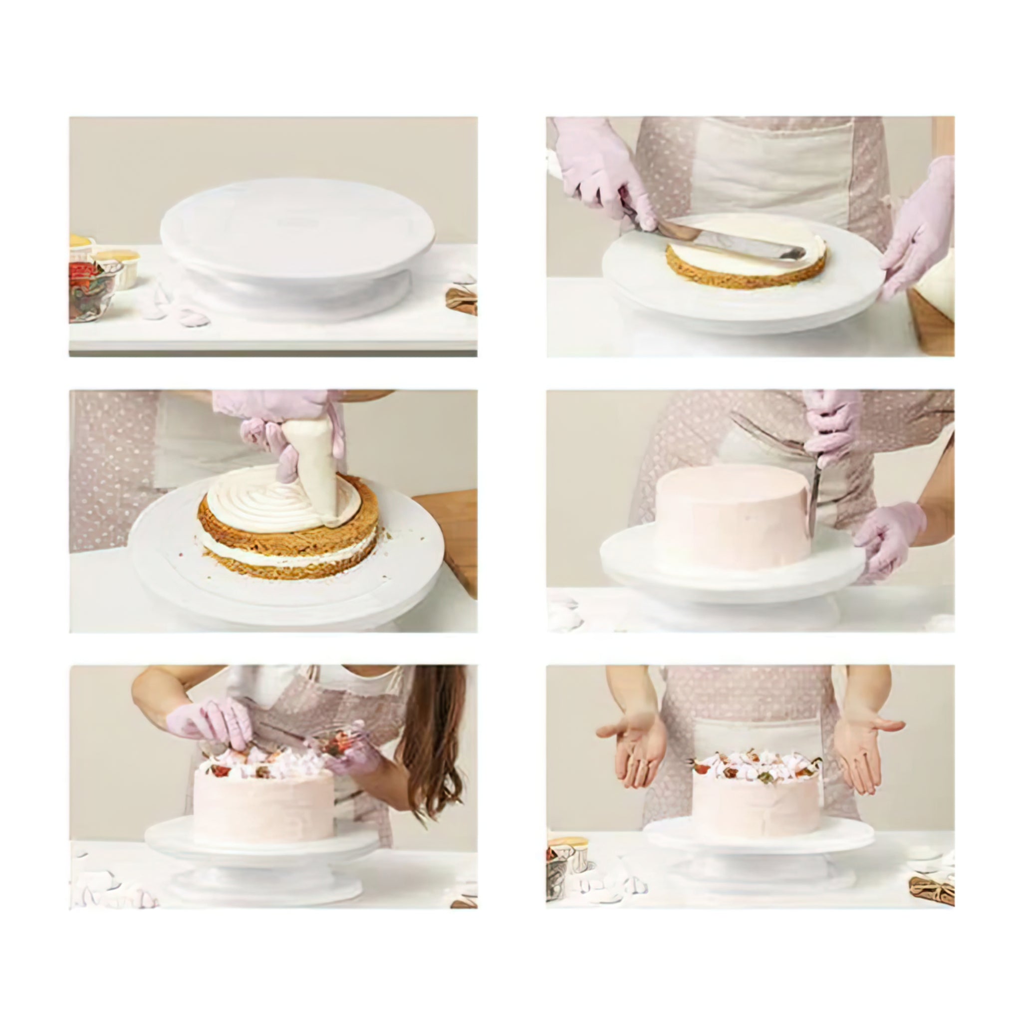 - Snurrande tårtfat med spatlar för smidig bakning