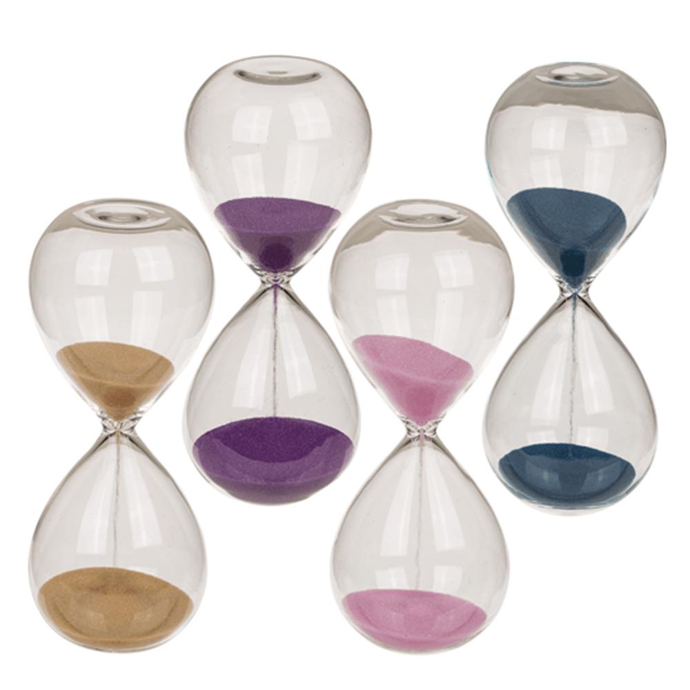 Den robusta konstruktionen i glas och den mjukt rinnande sanden skapar en harmonisk och lugnande effekt som passar i alla miljöer. För dig som söker en kombination av funktion och estetik, är detta timglas den perfekta lösningen. Timglaset skickas i slumpmässiga färger, blå, rosa, gul eller lila, vilket gör varje beställning till en spännande överraskning.