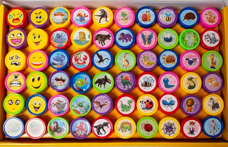 - Set med roliga stämplar med djur- och smileymotiv för barn