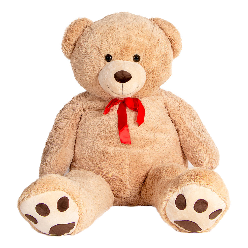 Det här gigantiska gosedjuret i form av en söt nallebjörn är omsorgsfullt designad för att erbjuda massvis av lek och gos till ditt barn! Den har en mjuk och gosig päls, svarta knappögon, mörkbrun nos och en röd dekorativ rosett runt halsen. Perfekt när du vill skämma bort ditt barn extra mycket eller varför inte ge bort som en fin gåva med extra allt till någon speciell? Oavsett, kommer denna gigantiska och gosiga nallebjörn garanterat bli en uppskattad kompis i barnrummet.