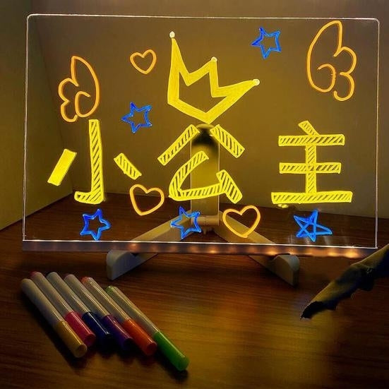 Denna ritplatta är ett mångsidigt hjälpmedel som inspirerar till kreativitet och ger praktisk nytta i vardagen. Tavlan passar perfekt för barn som vill rita och utforska sin fantasi eller för vuxna som vill planera, anteckna och organisera sin dag på ett tydligt sätt. Den kan även användas som nattlampa och sprider ett mjukt och behagligt ljus som skapar en rofylld stämning i rummet. USB-laddning gör den enkel att använda och det justerbara stativet ger bekväm placering. Tavlan är dessutom lätt att rengöra och kan användas om och om igen.