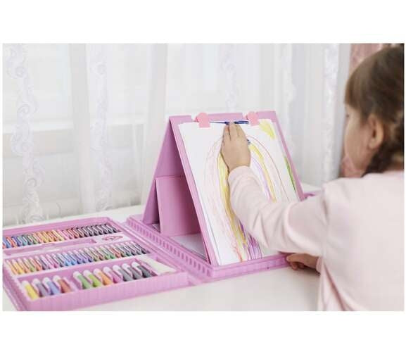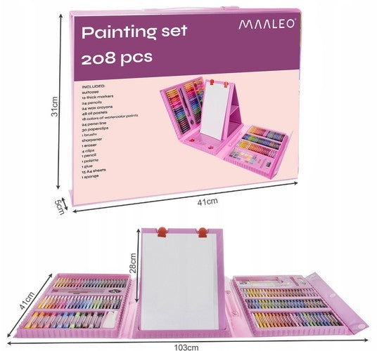 Med hela 208 delar, inklusive färgpennor, vaxkritor, oljepasteller och mycket mer, är detta kit perfekt för varje ungt konstgeni eller hobbykonstnär. Den genomtänkta designen med en bekväm väska gör det enkelt att bära med sig till skolan, utomhus, eller till en vän.