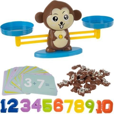 Denna charmiga matematikapa fungerar som en våg och är det perfekta verktyget för att introducera grundläggande matematik på ett lekfullt sätt. Med en medföljande kortlek, siffror från 1 till 10, och 19 små apor kan barnen enkelt lära sig att räkna och förstå matematiska koncept genom att balansera siffrorna på vågen. Detta set omvandlar lärande till en spännande och interaktiv upplevelse som gör att matematik känns både tillgängligt och roligt.