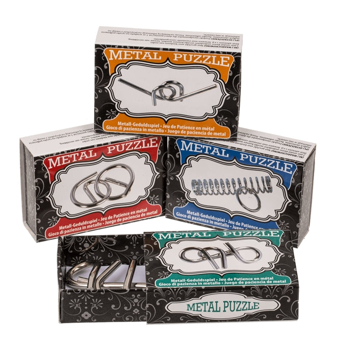 Metallpussel är ett klurigt, tvådelat minipussel tillverkat av metall, som går ut på att skilja de båda delarna ifrån varandra. Säljes osorterade, det vill säga det blir en överraskning vilket pussel du får vid beställning.
