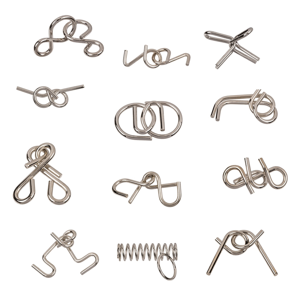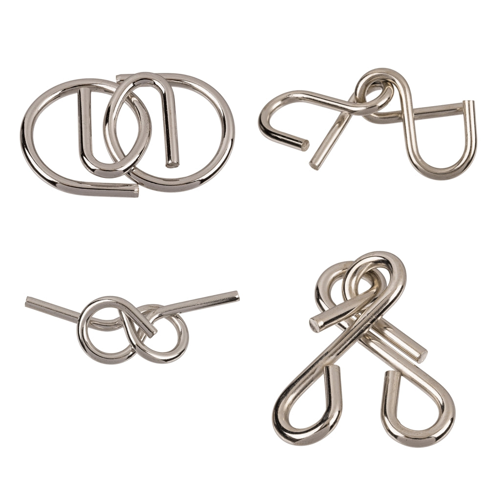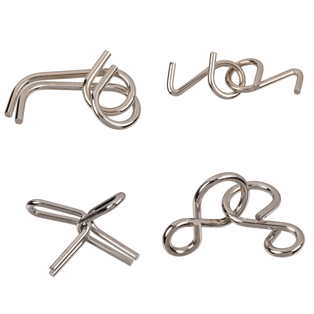 Dessa pussel innehåller alltså två metallformer som har trasslat ihop. Syftet är att hitta rätt metod för att separera formerna genom att vrida & vända de sammanlåsta bitarna.