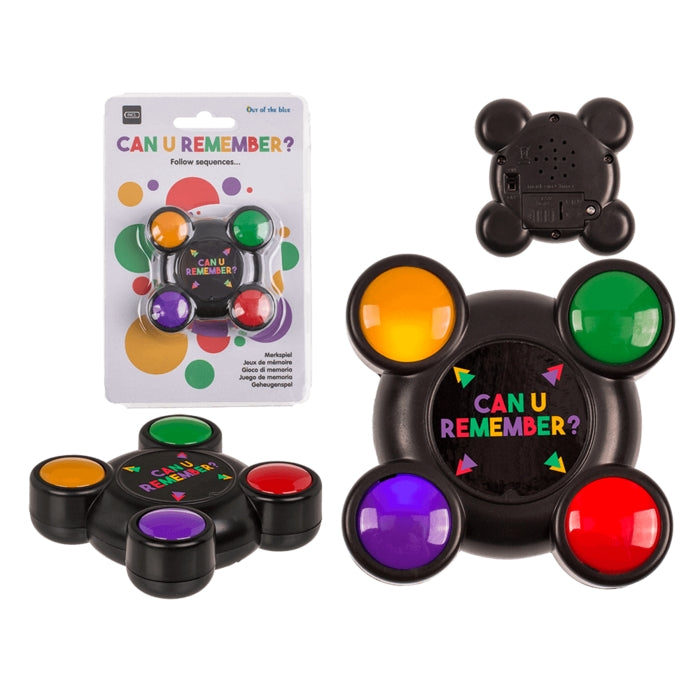 Can You Remember är spelet som sätter din minnesförmåga på prov. Med fyra knappar i olika färger gäller det att memorera ljussekvenserna och sedan upprepa dem genom att trycka på knapparna i rätt ordning. Perfekt för att förbättra din minneskapacitet och ha kul samtidigt! Utmana en vän och se vem som har det bästa minnet, eller ta med spelet till nästa fest för att höja stämningen.