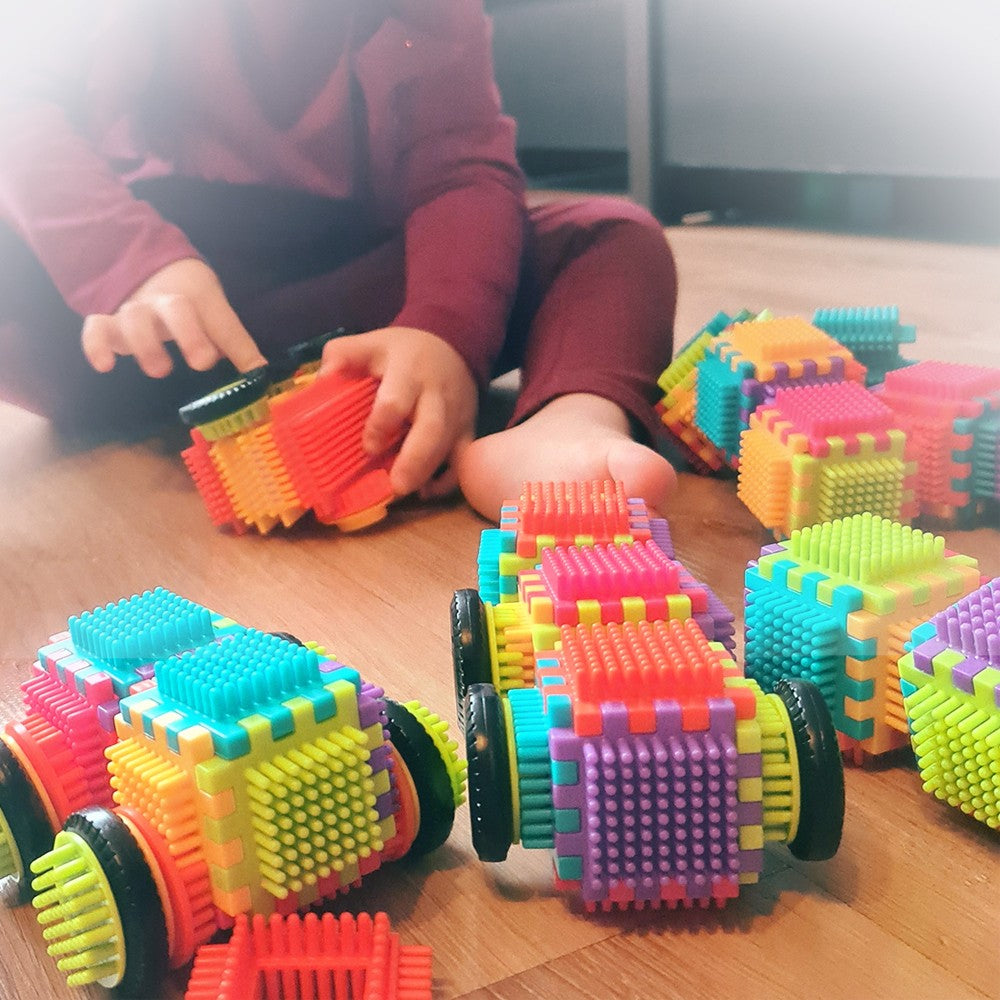 Upptäck en fantastisk byggsats med hela 192 delar, utformad i form av färgglada klossar. Dessa klossar ger barn möjlighet att skapa en mängd olika byggnader, samtidigt som de utvecklar sin rumsliga fantasi och kreativitet. Varje kloss är designad med mjuka, rundade piggar som enkelt fästs ihop, vilket gör dem säkra och perfekta för små händer att hantera. Med denna unika konstruktion kan barn bygga allt från hus och fordon till rymdstationer – bara fantasin sätter gränserna!