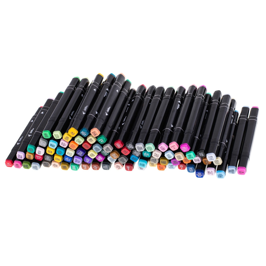 Skapa konst med ett 168-pack färgrika tuschpennor med dubbla spetsar för teckning, färgläggning och kreativa projekt.