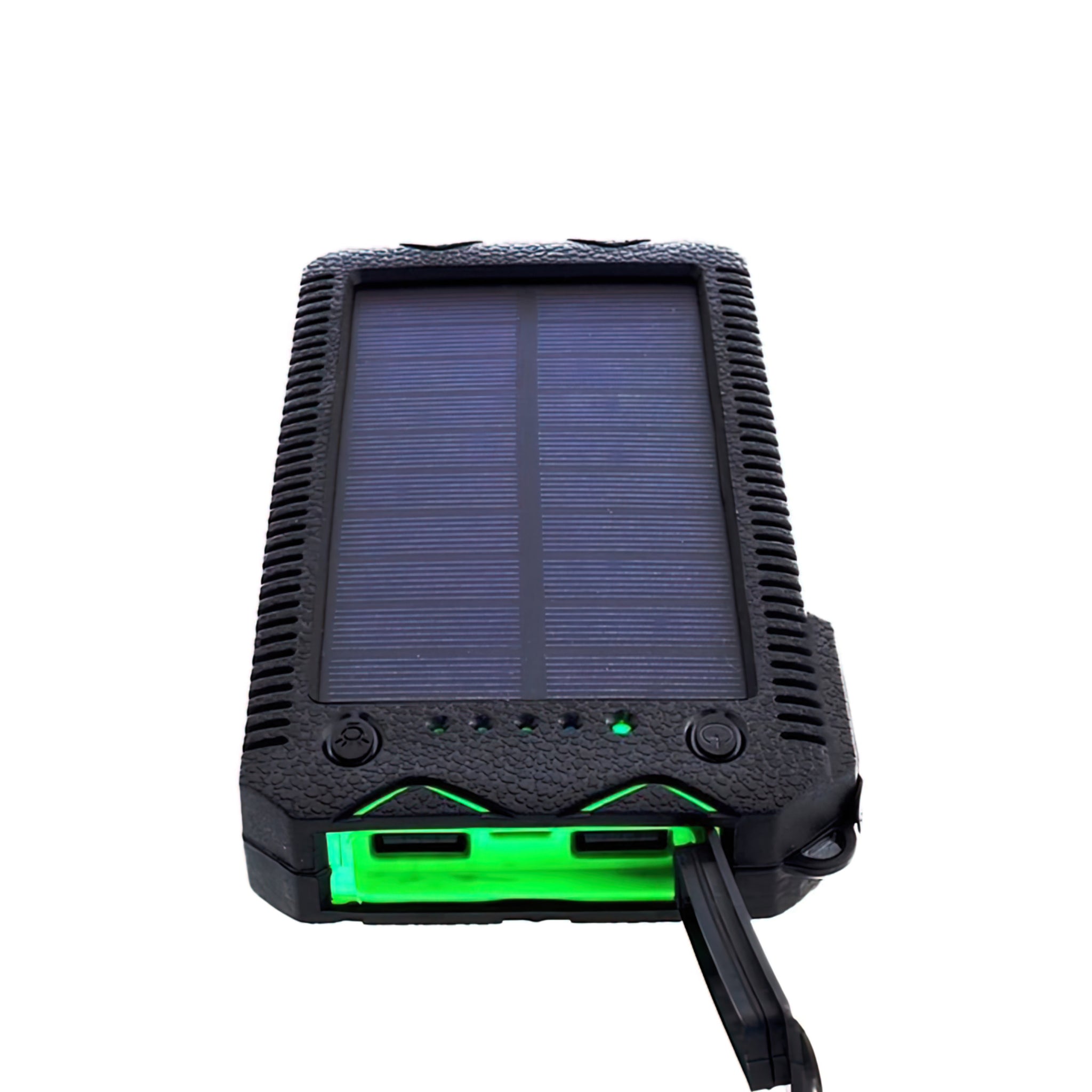 Tack vare IP65-klassningen är den både damm- och vattenbeständig, vilket ger extra trygghet i tuffa förhållanden. Powerbanken har också en inbyggd LED-ficklampa och tändare. Ladda två enheter samtidigt via de två USB 2.0-portarna och håll koll på batterinivån med den tydliga laddningsindikatorn. Dessutom är den utrustad med en monokristallin solpanel, vilket gör att den kan laddas direkt via solljus, perfekt för de långa dagarna utomhus.
