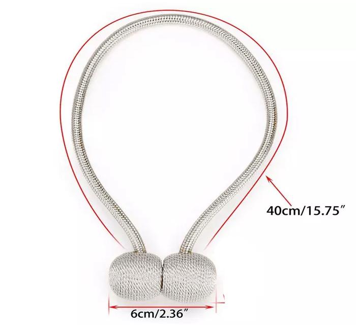 Dessa gardinhållare har en elegant flätad design och starka magneter i båda ändarna, vilket gör det enkelt att snabbt låsa ihop gardinerna när du önskar. Med sin tidlösa silverfärg passar de i alla rum och tillför en lyxkänsla. Oavsett om du vill släppa in ljus i vardagsrummet eller skapa en mysig atmosfär i sovrummet, är dessa gardinhållare det perfekta valet.