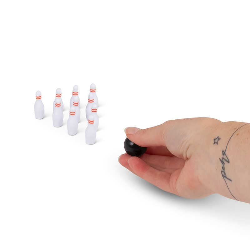 Detta mini-bowlingset är perfekt för både barn och vuxna som vill testa precision och skicklighet i en kompakt och underhållande form. Oavsett om det är en paus på jobbet, en regnig dag hemma eller en rolig stund med vänner – passar detta set alla. Ställ upp käglorna, rulla klotet och sikta på en strike!