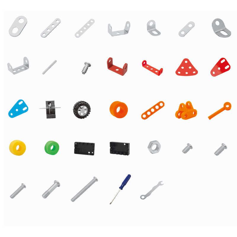 Denna DIY (Do It Yourself) byggsats för barn erbjuder en spännande möjlighet att bygga en fungerande robot från grunden. Med 106 delar i metall och plast, samt inkluderade verktyg, blir det enkelt för ditt barn att skruva ihop sin egen unika robot. Setet är perfekt för unga uppfinnare som vill lära sig om teknik samtidigt som de har kul.
