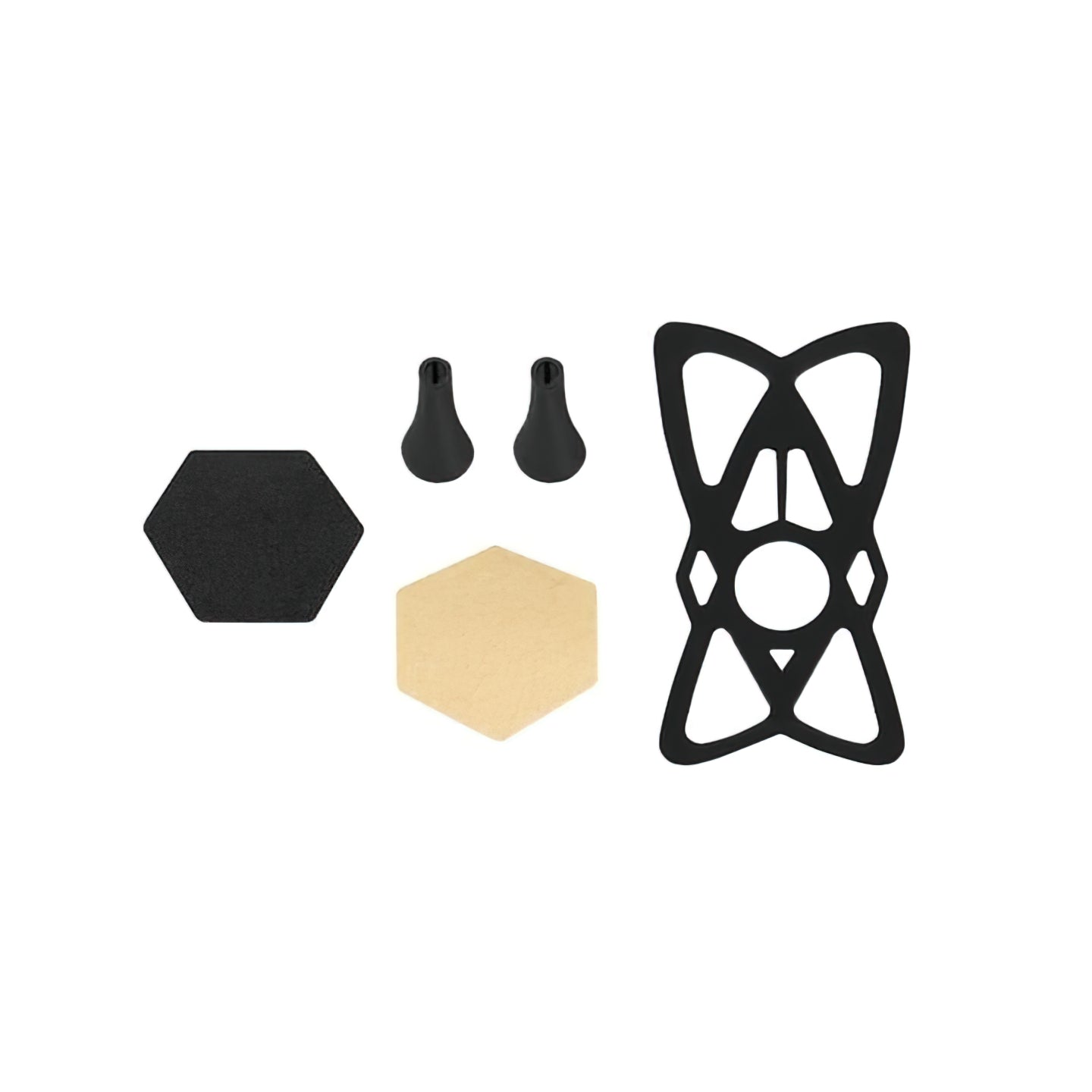 Med en dubbelkul-konstruktion kan mobilhållaren rotera 360 grader för optimal synlighet. Den robusta aluminiumkonstruktionen garanterar långvarig användning. Setet inkluderar även ett gummiskydd som monteras på hörnen av din enhet för extra säkerhet, samt två reservkuddar och två filtbrickor som skyddar mot repor.