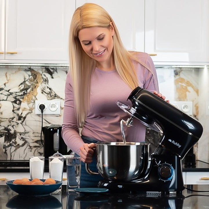Med en kraftfull 2200 W motor, erbjuder denna köksmaskin en mixer, köttkvarn och en köksassistent, alla samlade i en enda robust enhet. Denna köksassistent är designad för att underlätta matlagningen, oavsett om du behöver mixa, mala kött eller knåda deg.