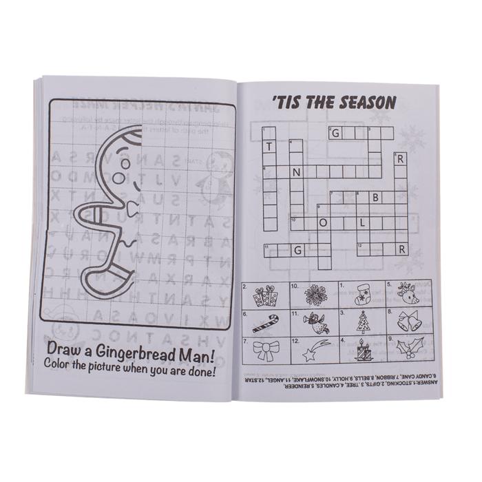 Upptäck en värld av julmagi i ett litet format med den här juliga rit- & korsordsboken. Denna bok är fylld med roliga och utmanande aktiviteter som korsord, labyrinter, färgläggningssidor och knepiga utmaningar, allt insvept i julens skimmer.